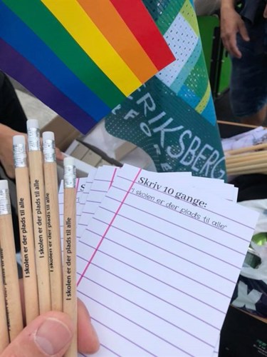 Hun fortsætter: ”For mig er der to gode grunde til, at vi er med i Prideoptoget. Den ene er at fortælle alle nuværende og kommende elever i folkeskolen, at der er plads til dem, som de er. Som lærere og børnehaveklasseledere ved vi jo, at trivsel og tryghed er en væsentlig del af fundamentet for, at man lykkes i livet og skolen. Hvis vi kan hjælpe til at skabe en positiv oplevelse hos eleverne om, at der er plads til alle, og hvis vi kan hjælpe bare en enkelt LGBT+ elev med at føle sig bedre tilpas i skolen, så er vi lykkedes med noget. Men det handler jo også om skolen som en mangfoldig arbejdsplads. Vi ved, at op mod 40 % af LGBT+ personerne på det danske arbejdsmarked ikke føler, de kan være åbne omkring bl.a. deres seksualitet. Det er ikke godt nok. I skolen – og på arbejdsmarkedet – skal der være plads til alle.”