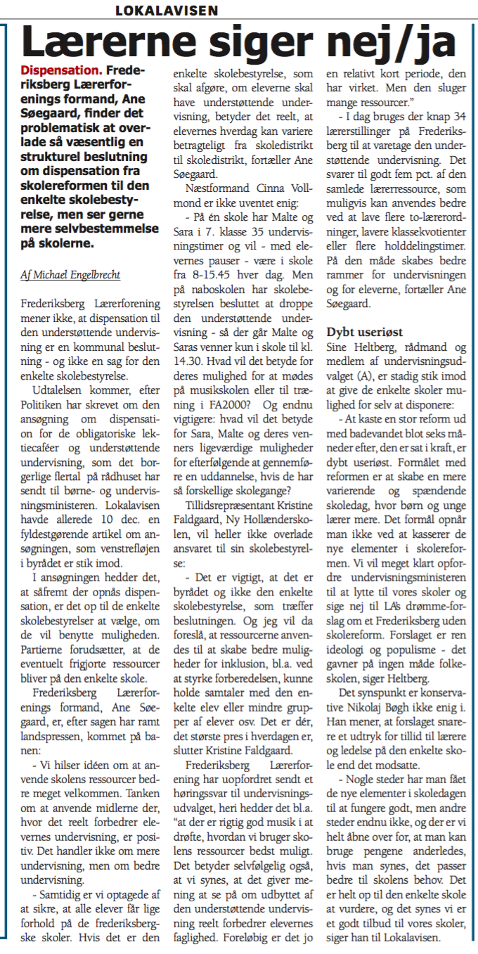 I forbindelse med Frederiksberg Kommunes dispensationsansøgning har FLF været i medierne både på landsplan, men også lokalt.